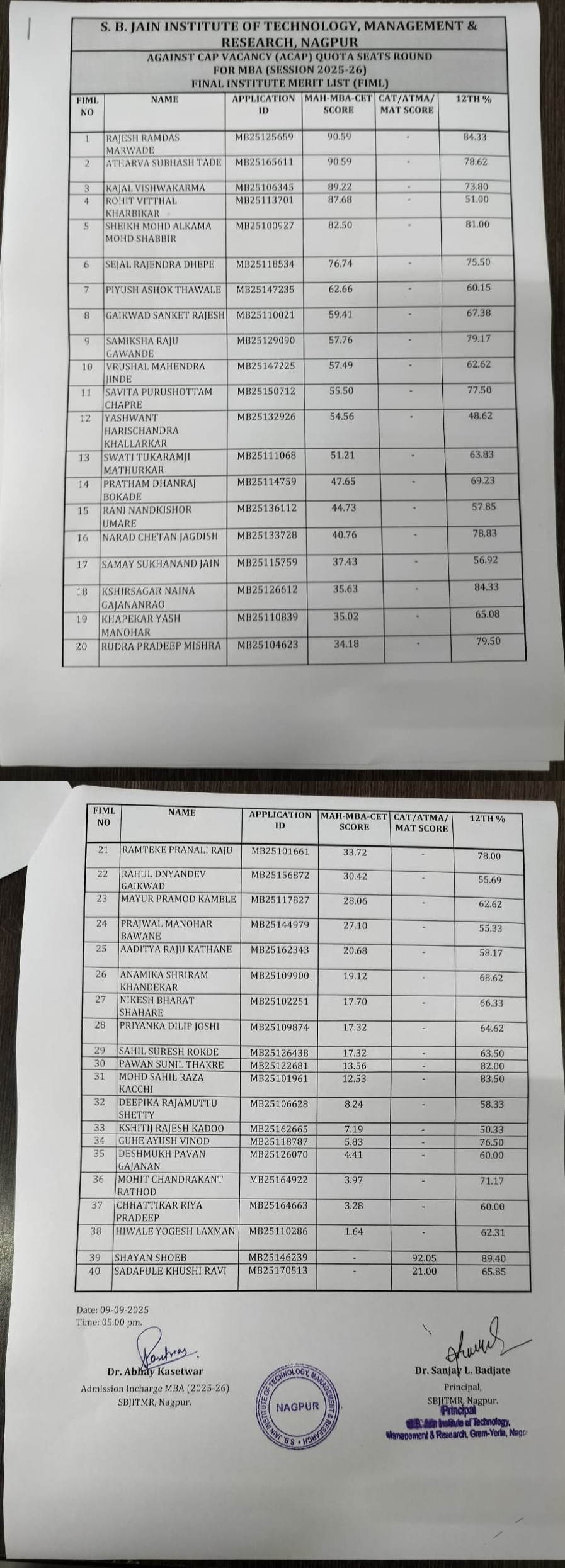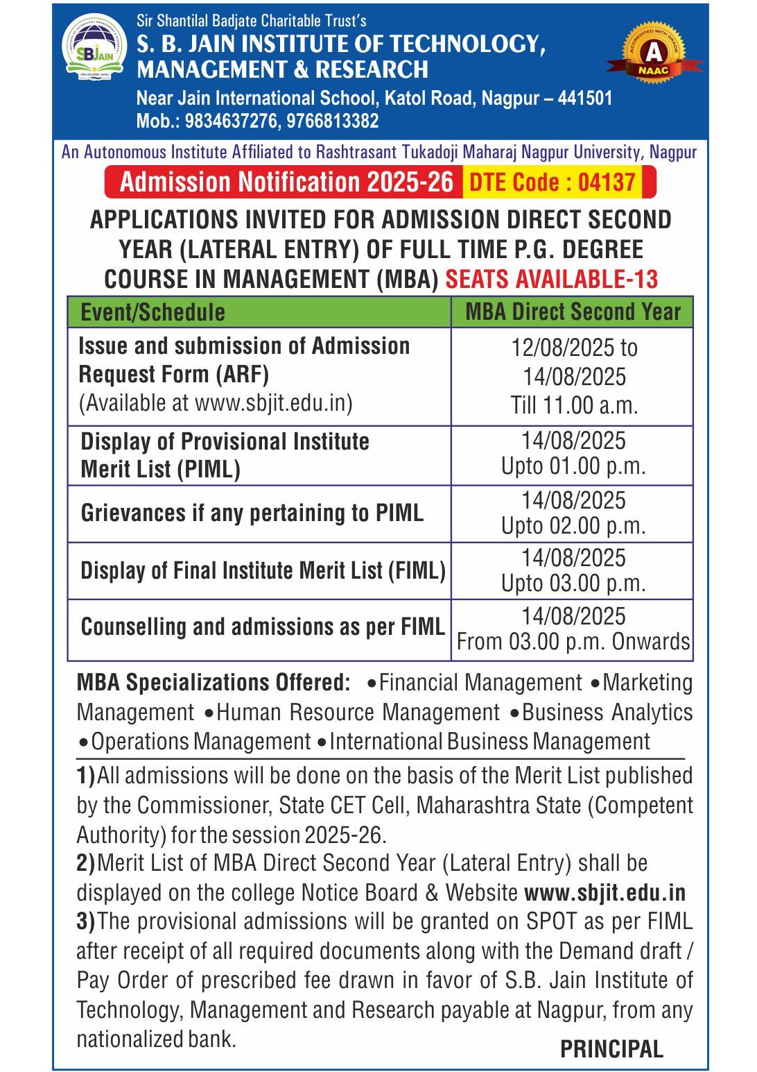 - MBA Direct Second Year (Lateral Entry) 2025-26