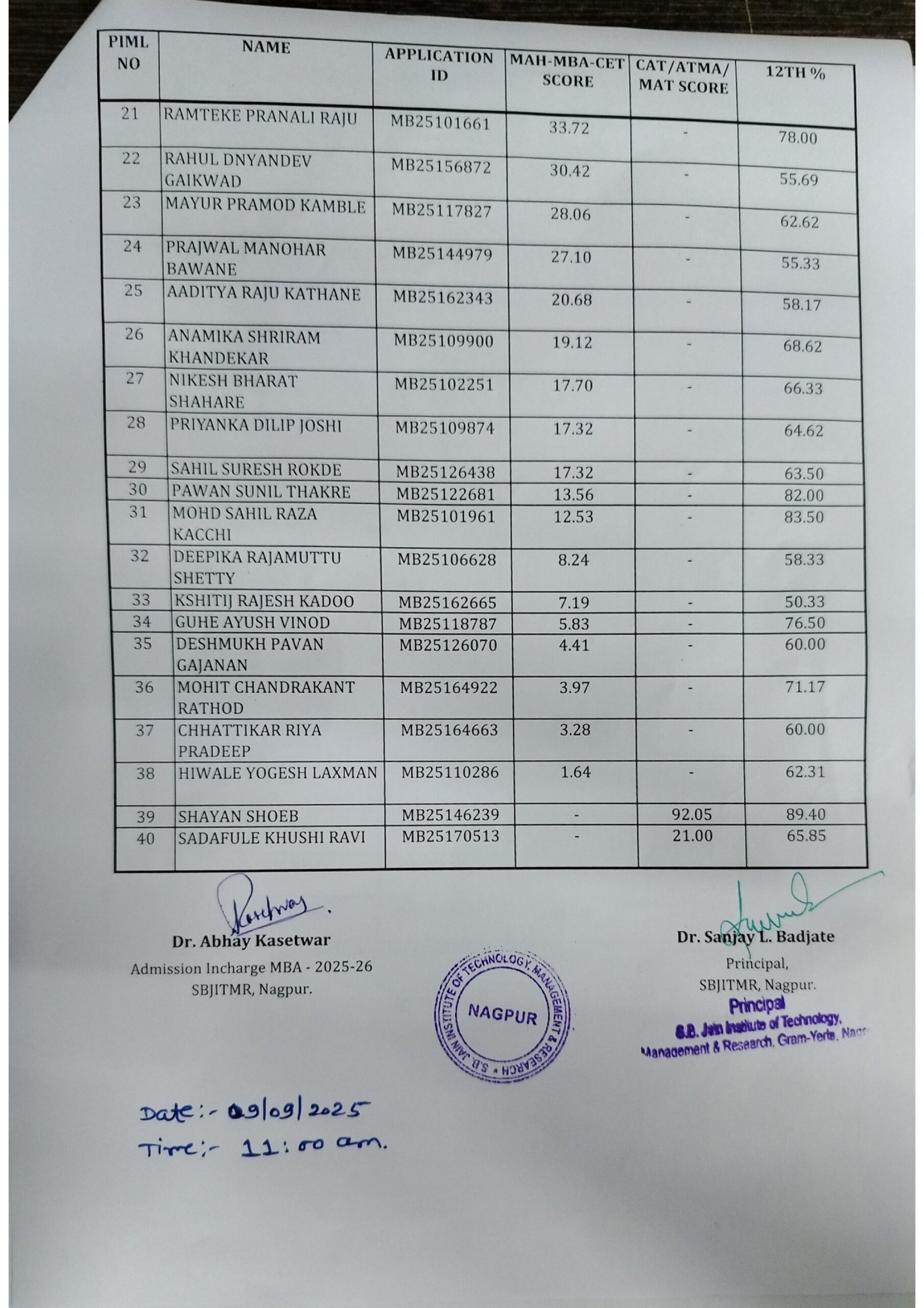 - Obtained score in CET conducted by the Competent Authority (MAH-MBA/MMS-CET 2018).